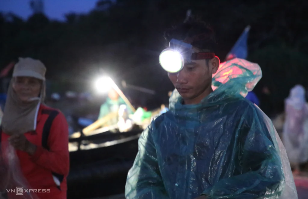 Mr. Le Phung and his two sons brought in 250 kilograms on this trip. They spent three hours, from 4 to 7 a.m., removing the fish from the nets.