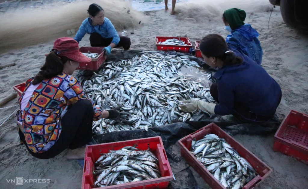 According to Mr. Ho Van Thanh, herring can be caught year-round, but the peak season is from after the Lunar New Year until the end of the fourth lunar month. “This time last year, there were hardly any herring, but this year we’ve had a big catch,” he said.