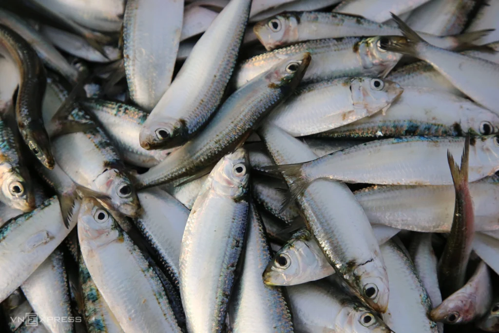 Herring have slightly greenish skin, long bodies, and many small bones. Each kilogram contains about 30–35 fish. Wholesale prices range from 12,000–15,000 VND/kg, while retail prices reach 20,000 VND/kg. The fish can be served raw, grilled, fried, or dried.