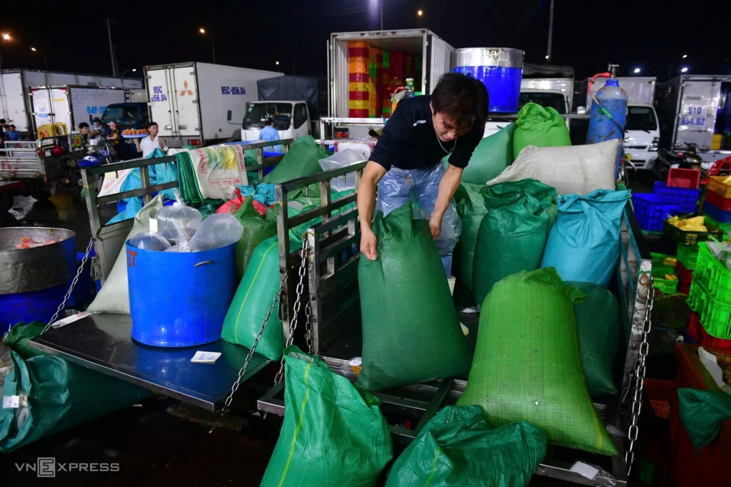 Binh Dien Market covers an area of about 30 hectares and is located at the western gateway of Ho Chi Minh City. It plays a vital role in supplying fresh seafood, livestock, poultry, and vegetables to the city and neighboring provinces.