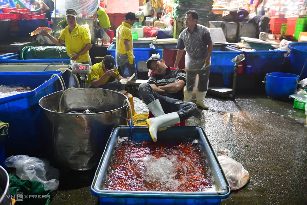 Source: https://vnexpress.net/cho-ca-chep-lon-nhat-tp-hcm-tat-bat-ngay-ong-tao-5039365.html